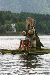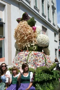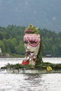 Narzissenfest 2011. Première fête des Narcisses à laquelle j’ai participé. Également première fois que j’ai découvert les Altesses de la fête des Narcisses. Cette année Christina Stolz originaire de Krakauschatten a été élue Reine. Les deux Princesses Sigrid Pilz de Graz et Gundula Aumayr de Bad Aussee ont complété le podium. Après diverses manifestations durant 4 jours, le paroxysme de la Fête est atteint avec les cortèges fleuris. Traditionnellement, le premier cortège part de Bad Aussee pour rejoindre soit Altaussee soit Grundlsee. Le deuxième a lieu soit sur le lac d’Altaussee soit Grundlsee. Cette année-là la période de floraison des Narcisses a été très en avance. Beaucoup de Figurines ont donc été fleuries avec d’autres fleurs, ce qui n’a rien changé à cette magnifique fête.
