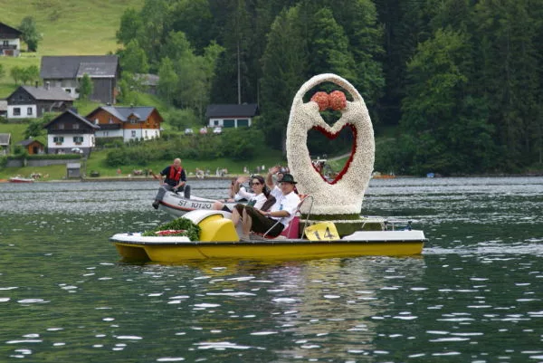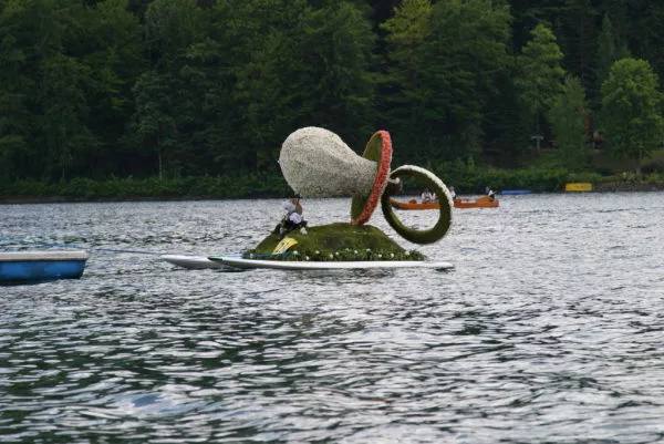 Narzissenfest 2011. Première fête des Narcisses à laquelle j’ai participé. Également première fois que j’ai découvert les Altesses de la fête des Narcisses. Cette année Christina Stolz originaire de Krakauschatten a été élue Reine. Les deux Princesses Sigrid Pilz de Graz et Gundula Aumayr de Bad Aussee ont complété le podium. Après diverses manifestations durant 4 jours, le paroxysme de la Fête est atteint avec les cortèges fleuris. Traditionnellement, le premier cortège part de Bad Aussee pour rejoindre soit Altaussee soit Grundlsee. Le deuxième a lieu soit sur le lac d’Altaussee soit Grundlsee. Cette année-là la période de floraison des Narcisses a été très en avance. Beaucoup de Figurines ont donc été fleuries avec d’autres fleurs, ce qui n’a rien changé à cette magnifique fête.